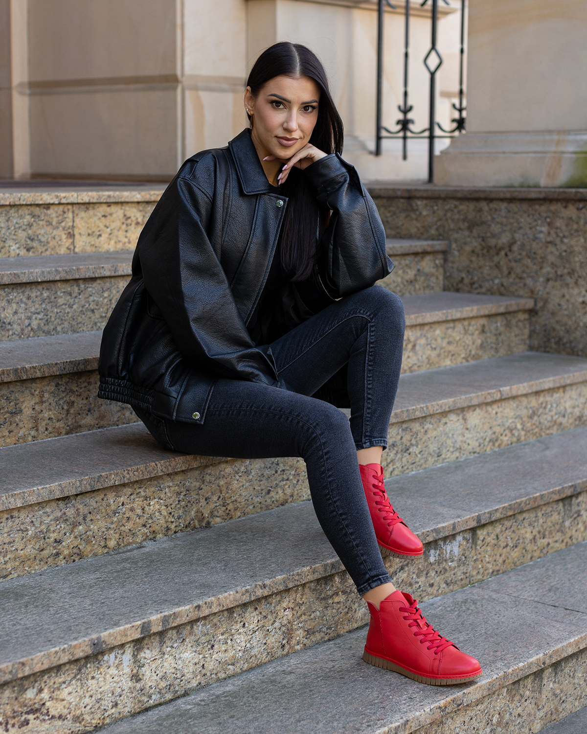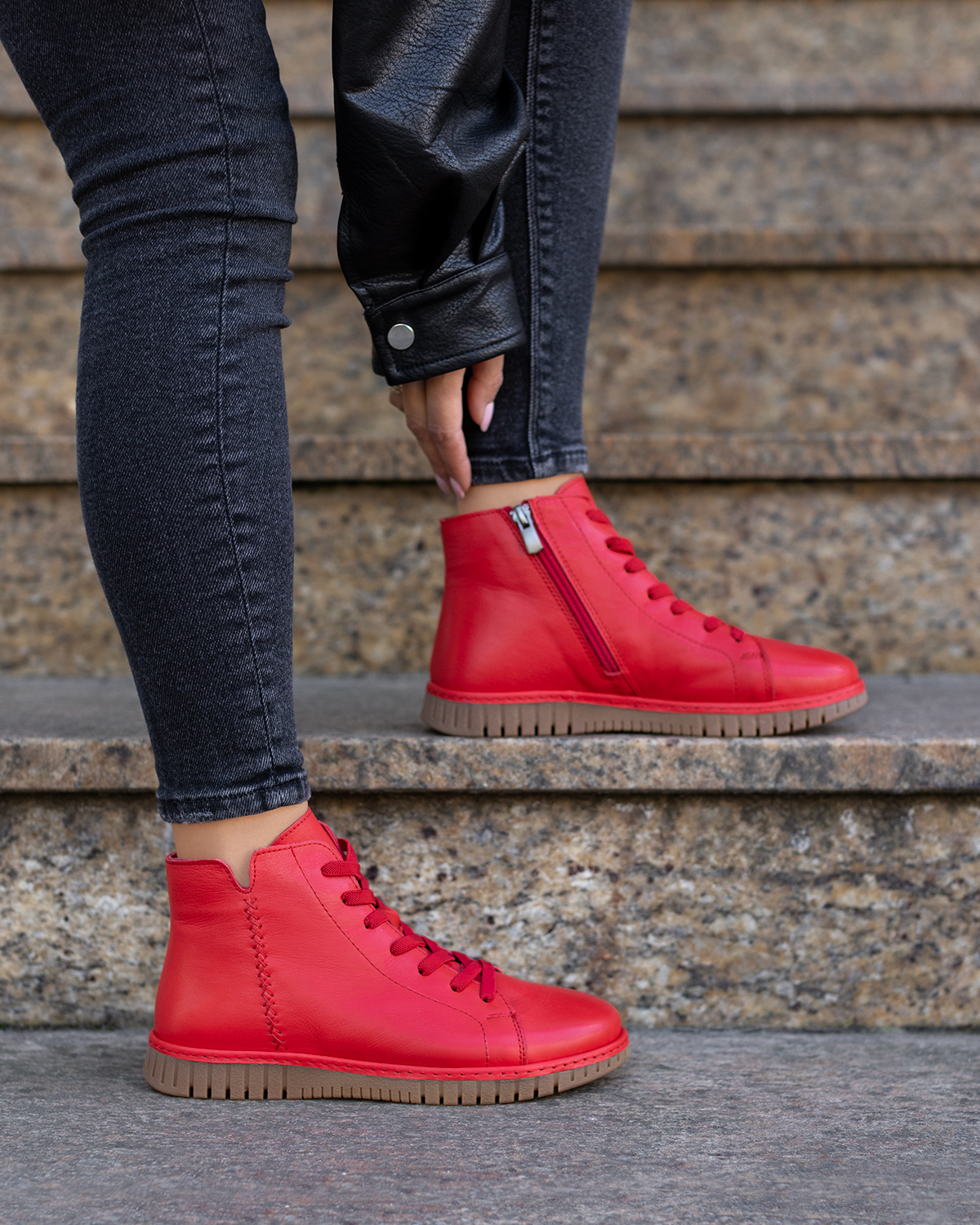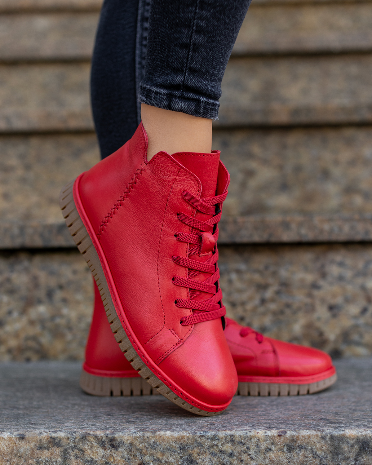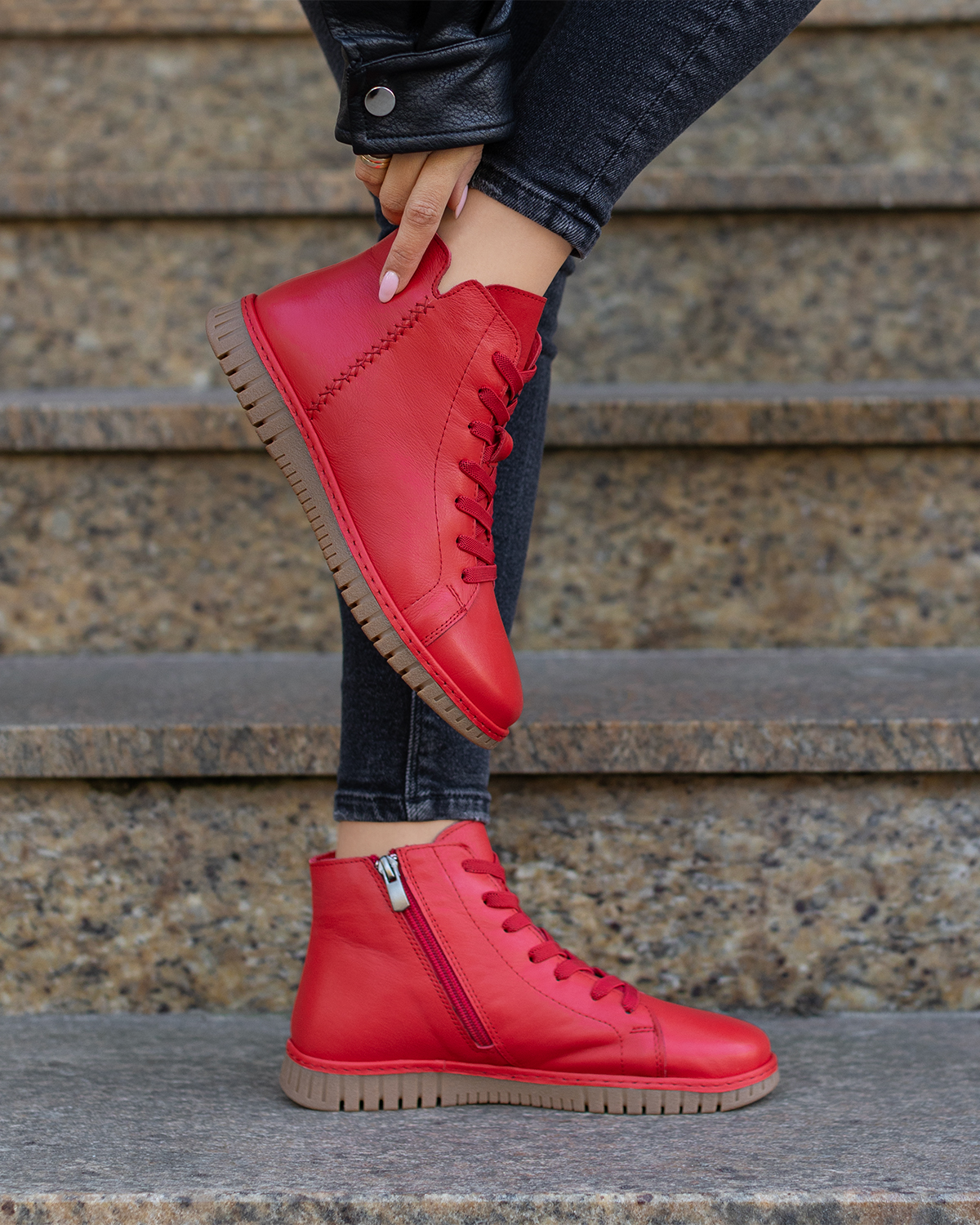 Czerwone botki damskie sznurowane ze skóry licowej 161-16632-CZERWOCzerwone botki damskie sznurowane ze skóry licowej 161-16632-CZERWO