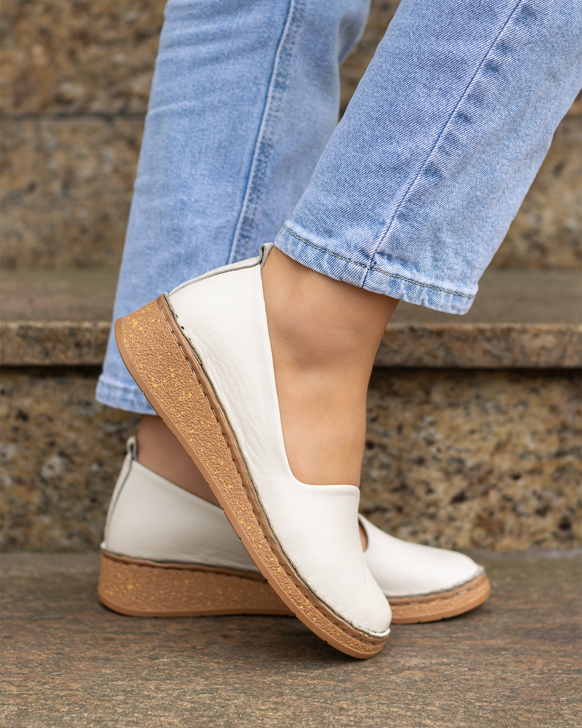 Białe półbuty damskie wsuwane z naturalnej skóry licowej