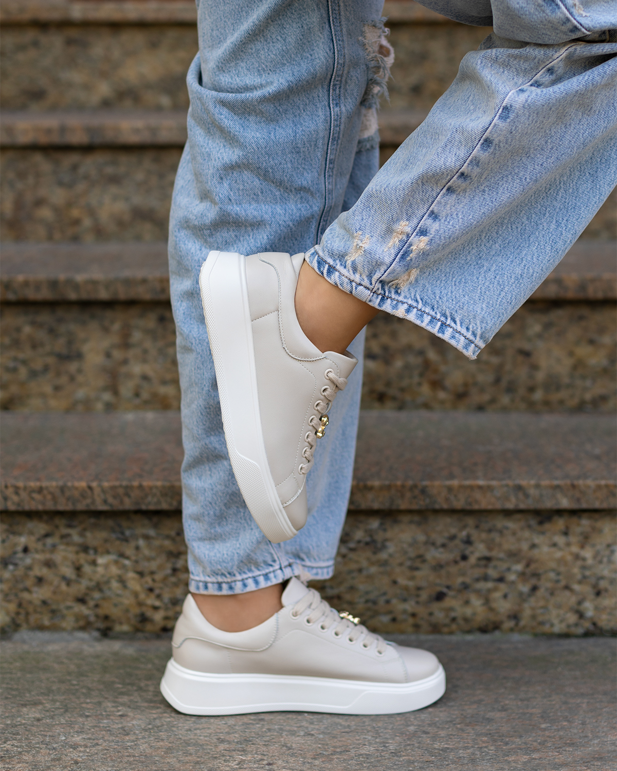 Jasnobeżowe trampki damskie z naturalnej skóry licowej