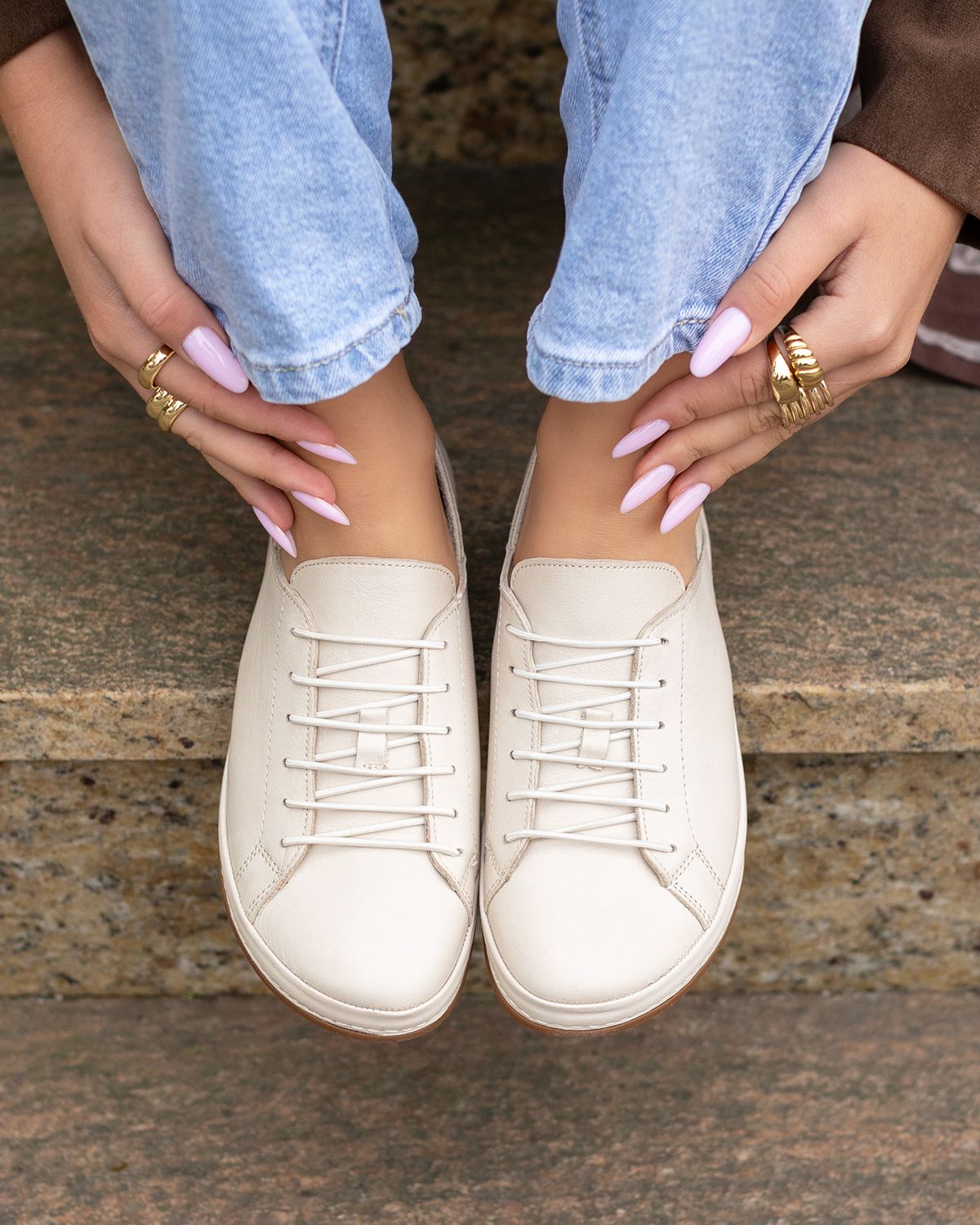 Jasnobeżowe trampki damskie z naturalnej skóry licowej