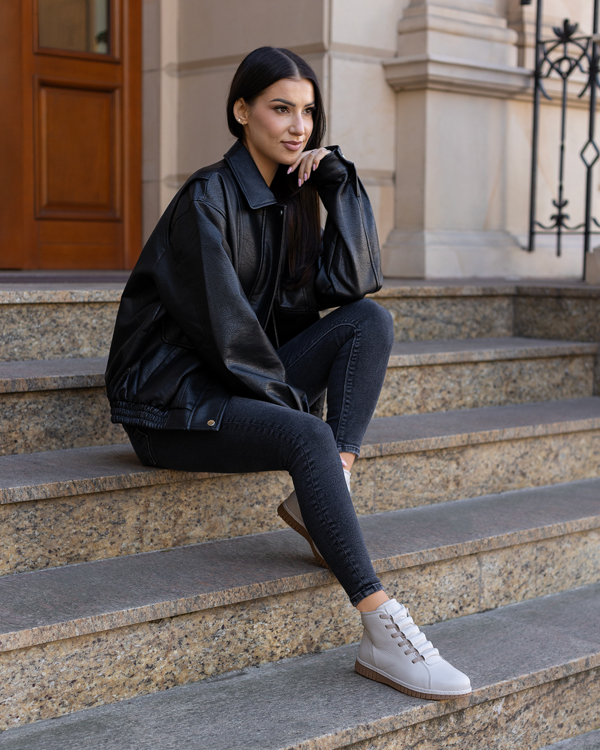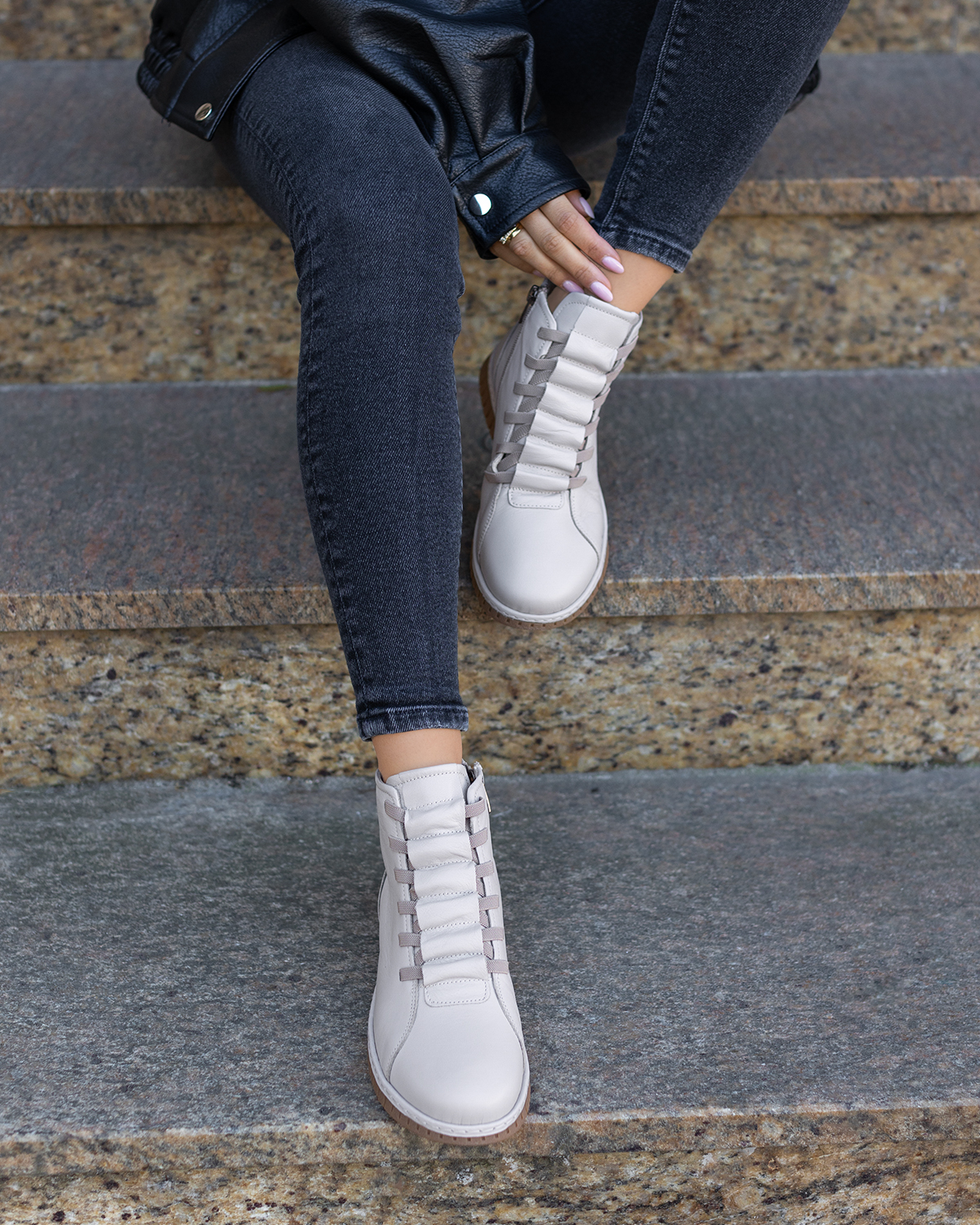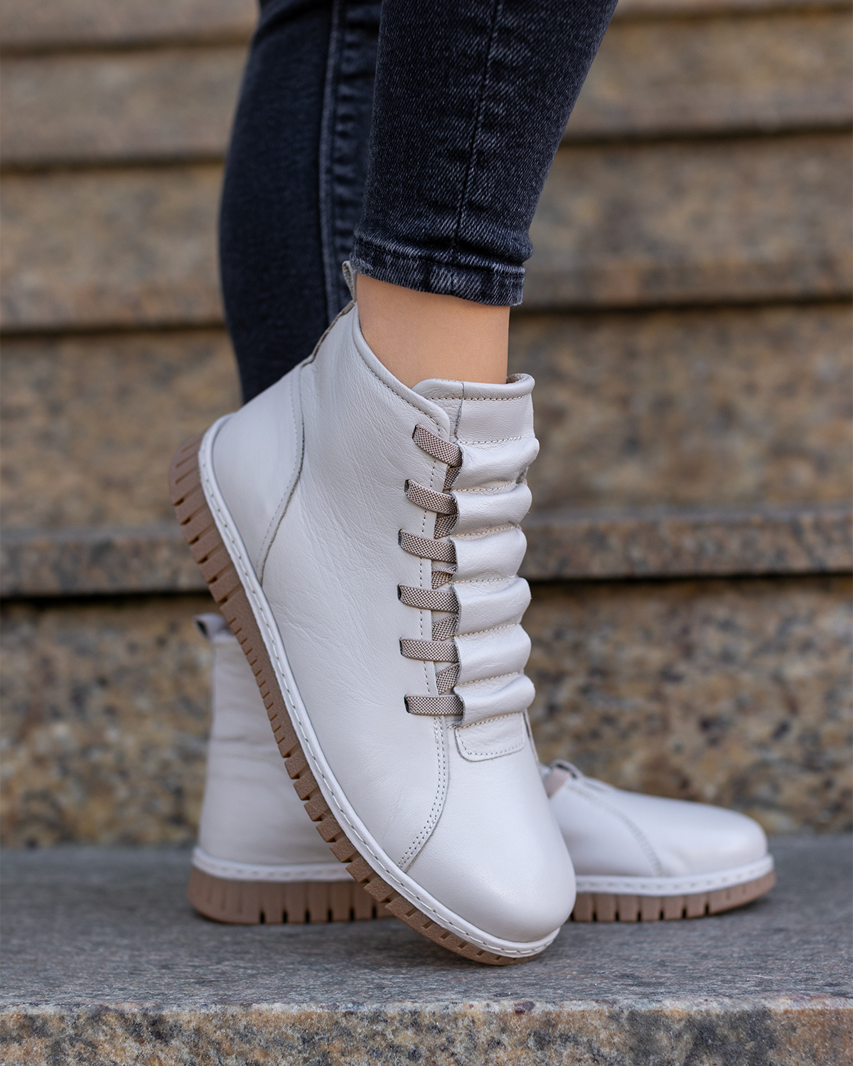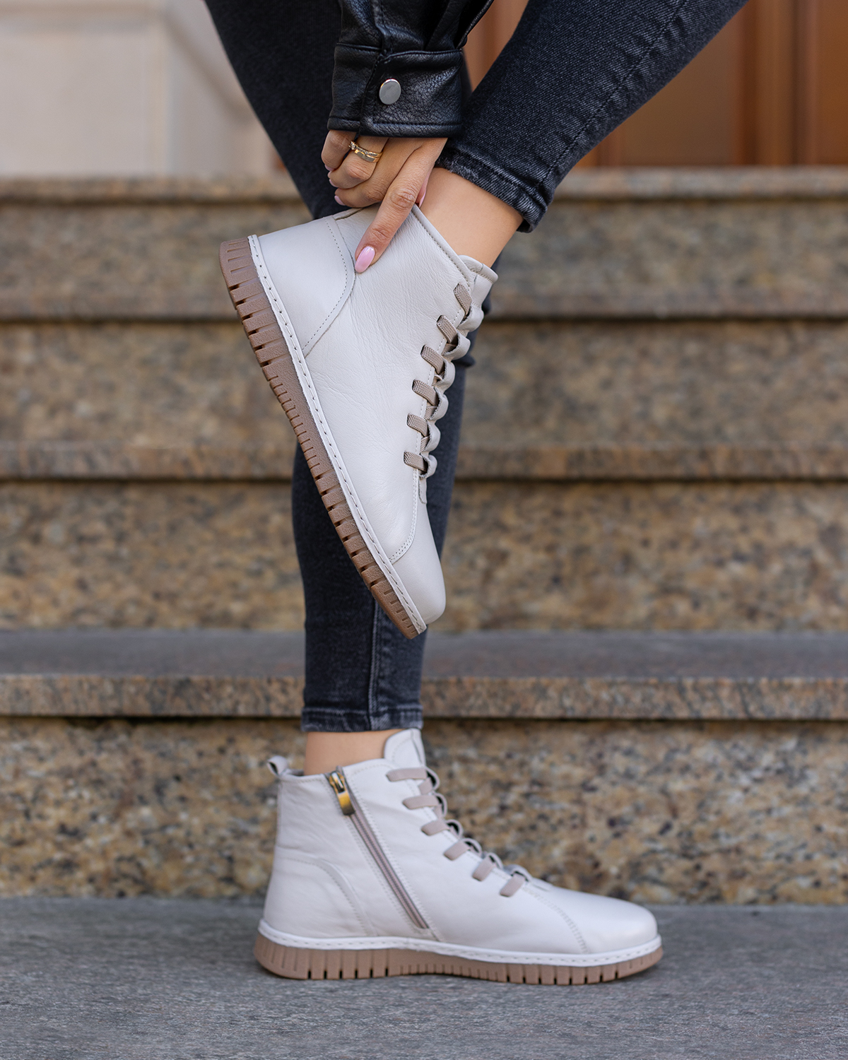 Jasnobeżowe trzewiki damskie sznurowe ze skóry naturalnej 161-26632-BEŻJasnobeżowe trzewiki damskie sznurowe ze skóry naturalnej 161-26632-BEŻ