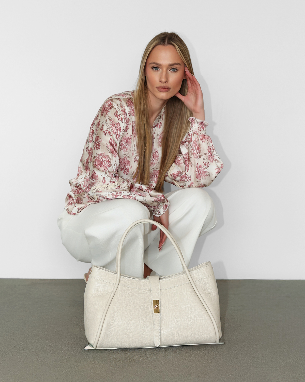 Kremowa duża torebka damska skórzana na ramię