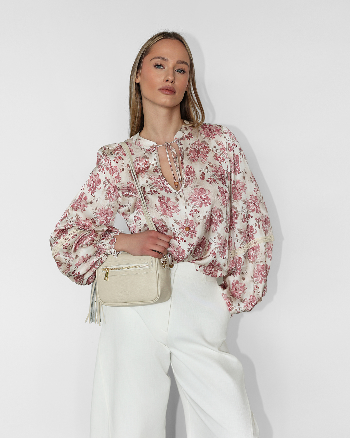 Pudrowa torebka damska ze skóry licowej 107-2-RÓŻOWY