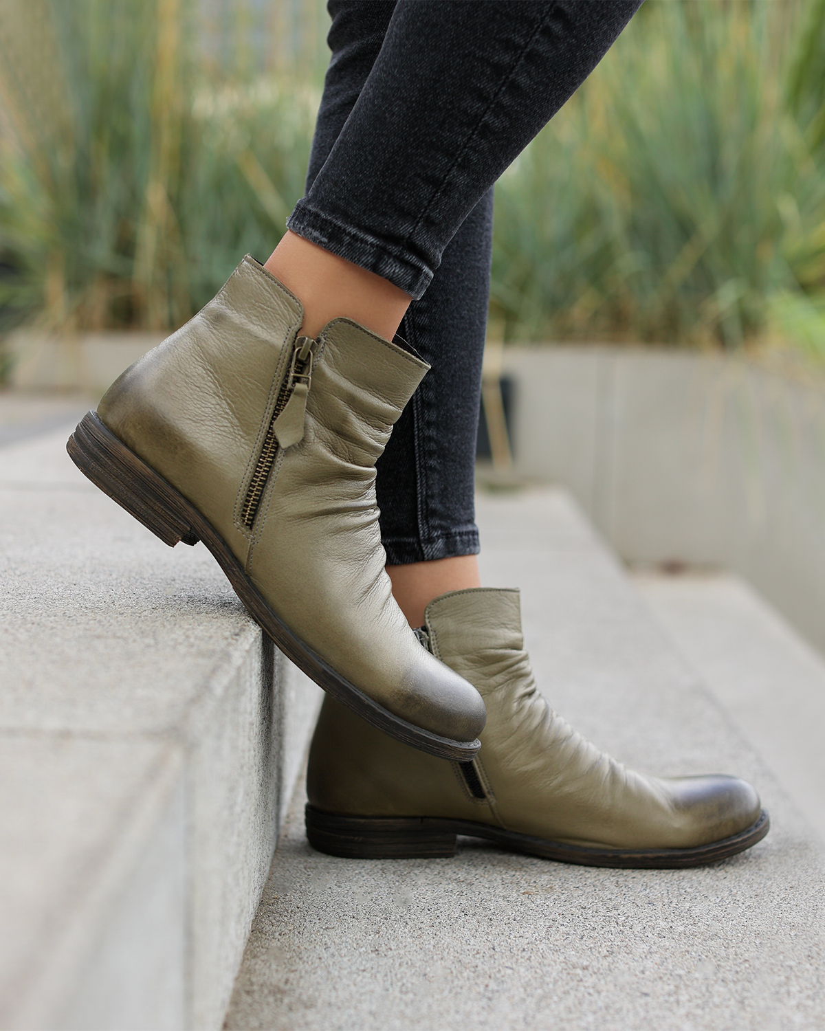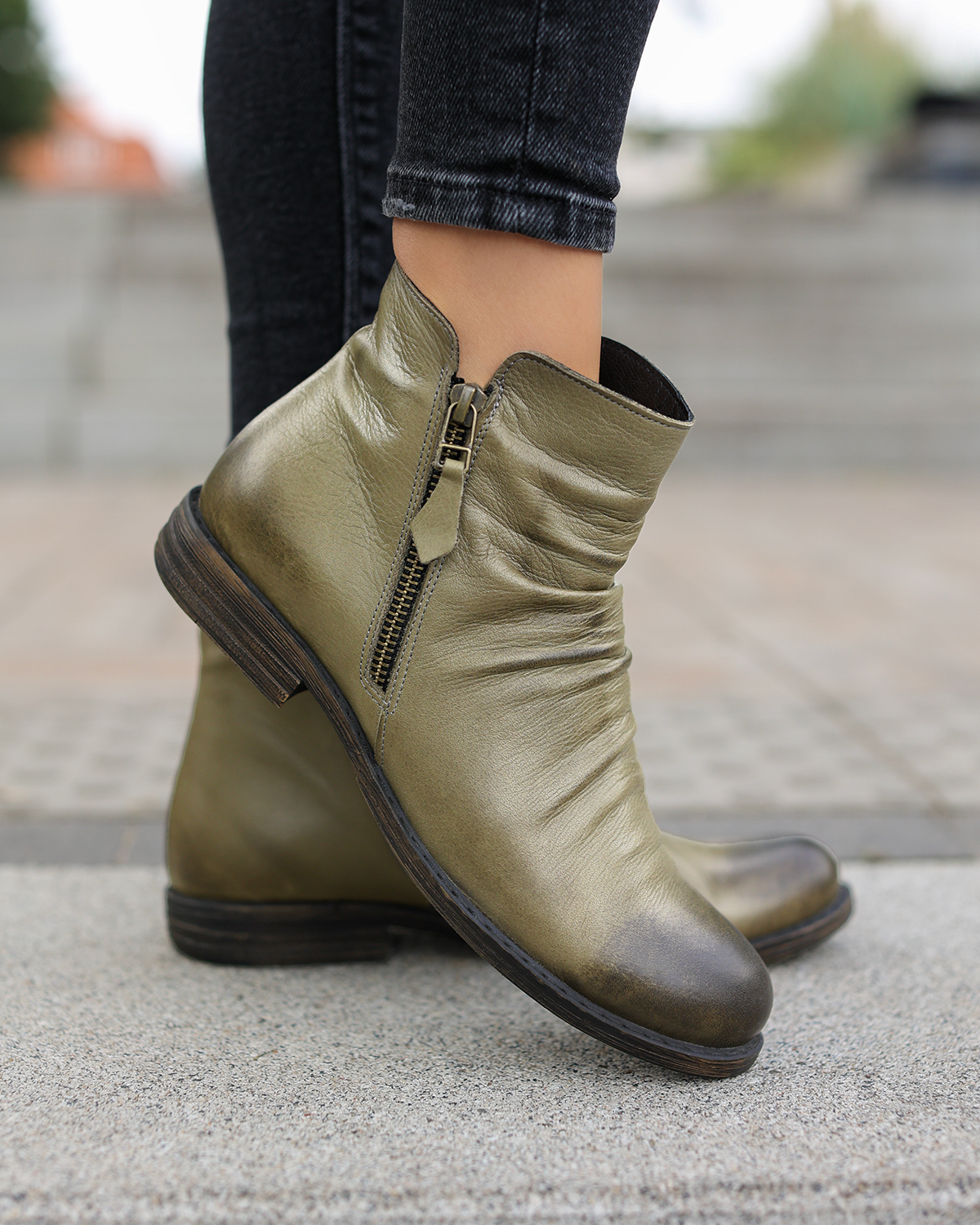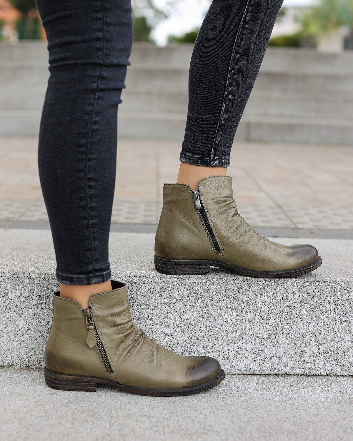 Oliwkowe botki damskie ze skóry naturalnej 146-78792-ZIELONOliwkowe botki damskie ze skóry naturalnej 146-78792-ZIELON