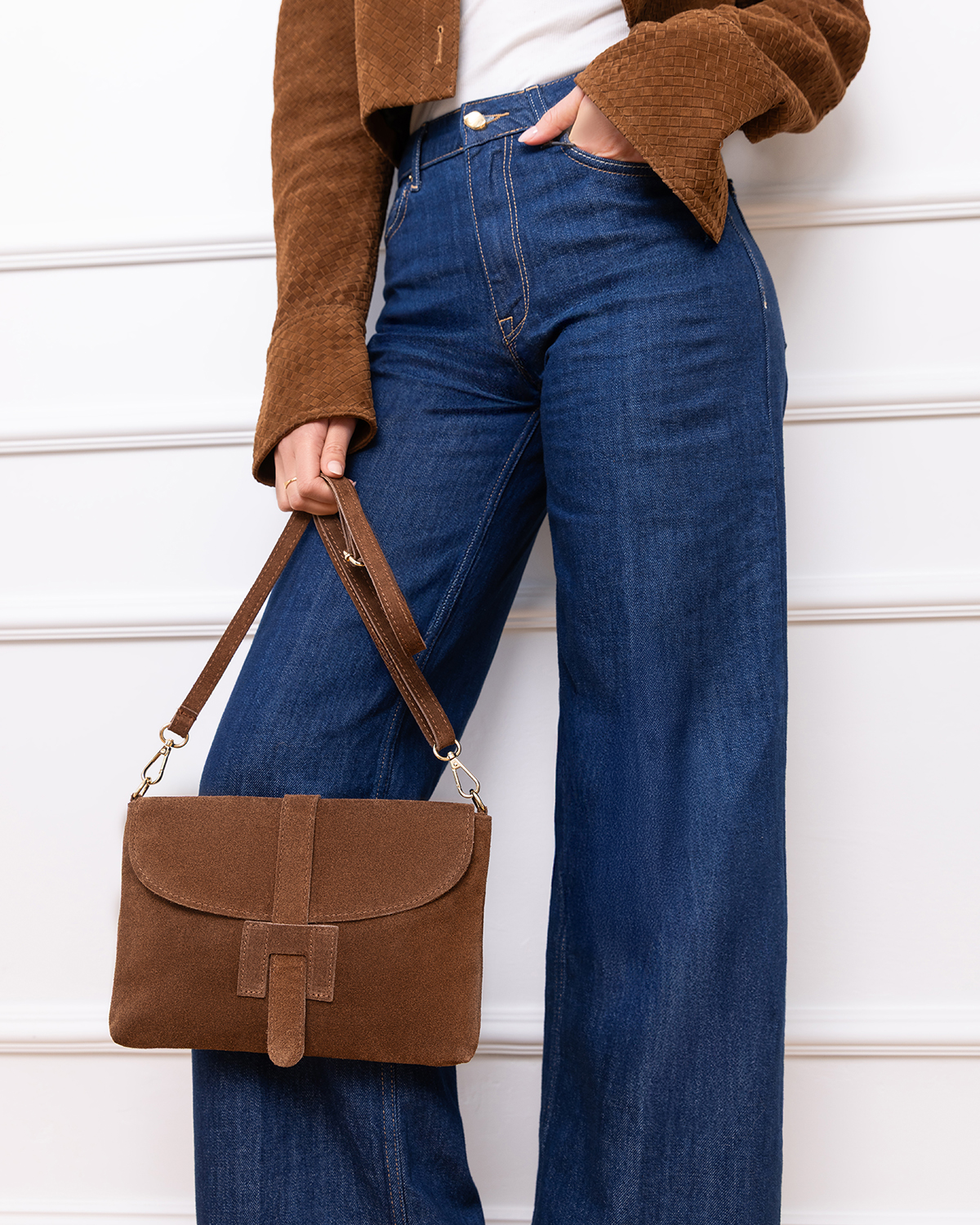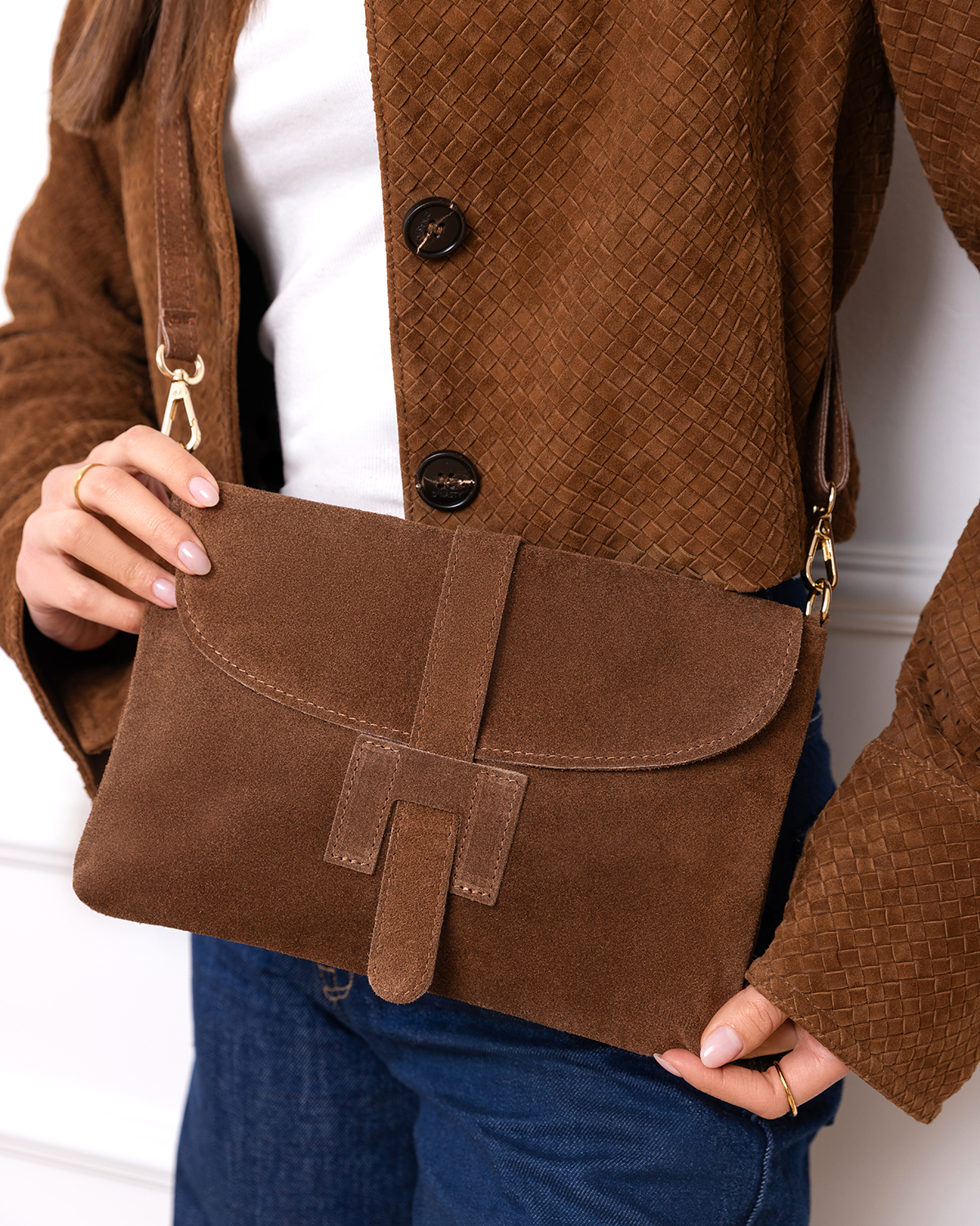 Czekoladowa mała torebka hobo zamszowa z klamrą
