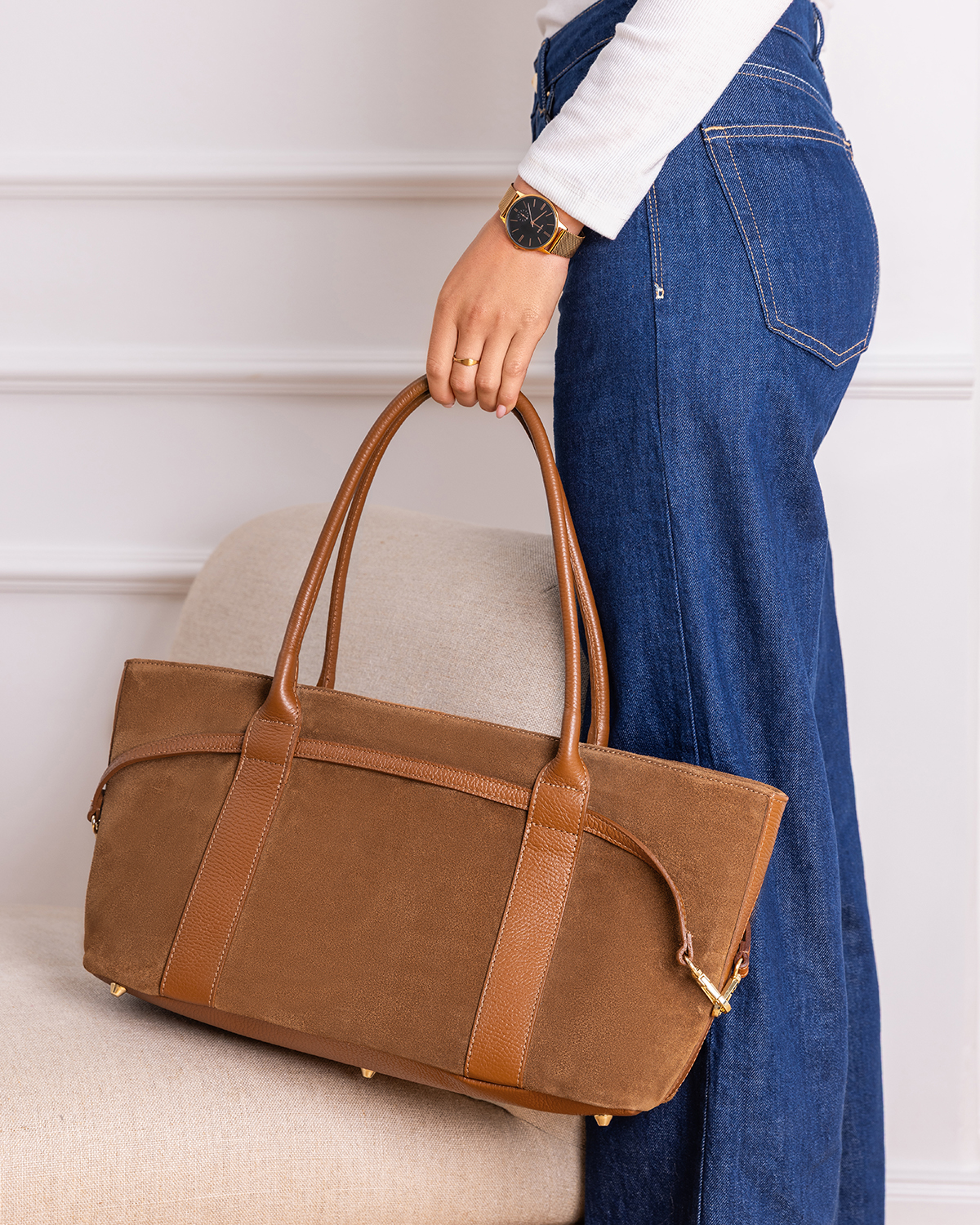 Czekoladowa torebka kuferek ze skóry zamszowej