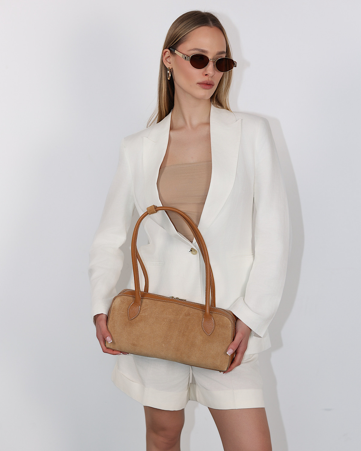 Beżowa duża torebka damska skórzana