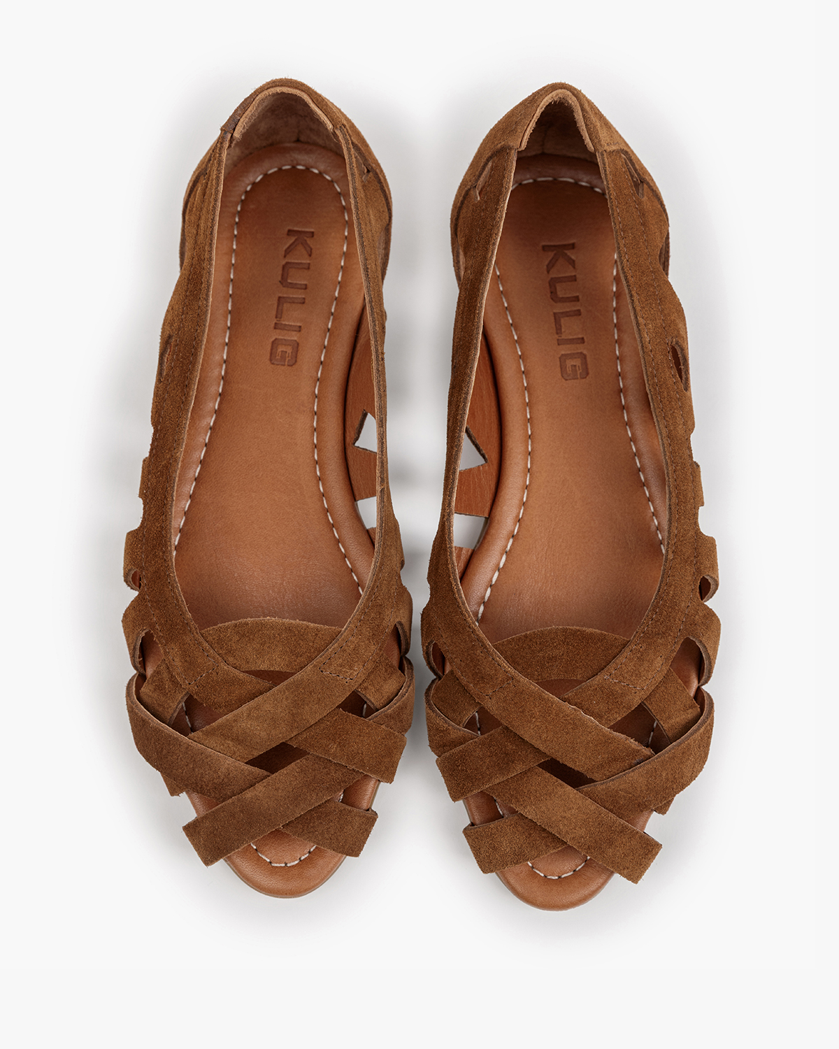 Czekoladowe baleriny damskie ażurowe ze skóry zamszowej 145-004042-CZEKOCzekoladowe baleriny damskie ażurowe ze skóry zamszowej 145-004042-CZEKO