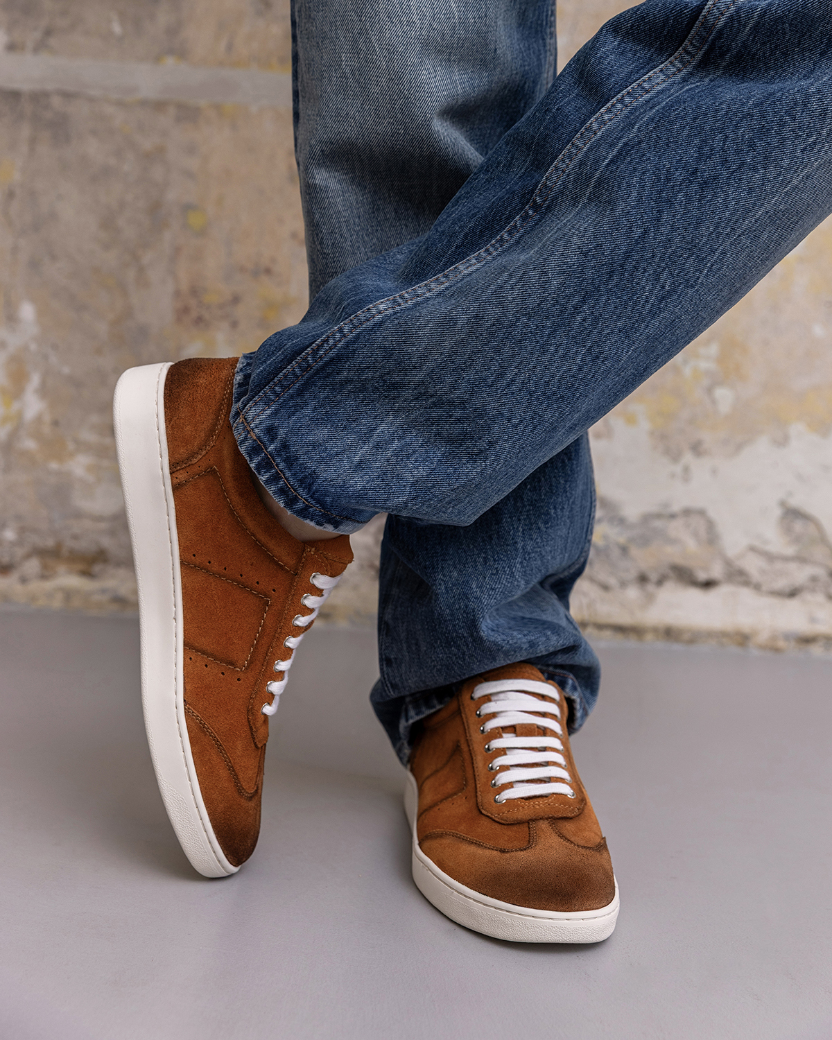 Ciemnobeżowe trampki męskie ze skóry nubukowej