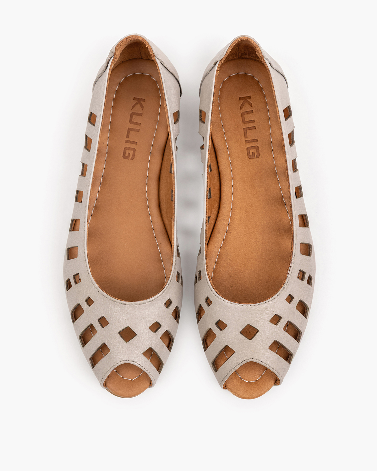 Szare baleriny damskie skórzane na niskim obcasie peep toe