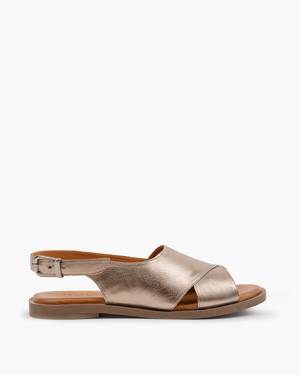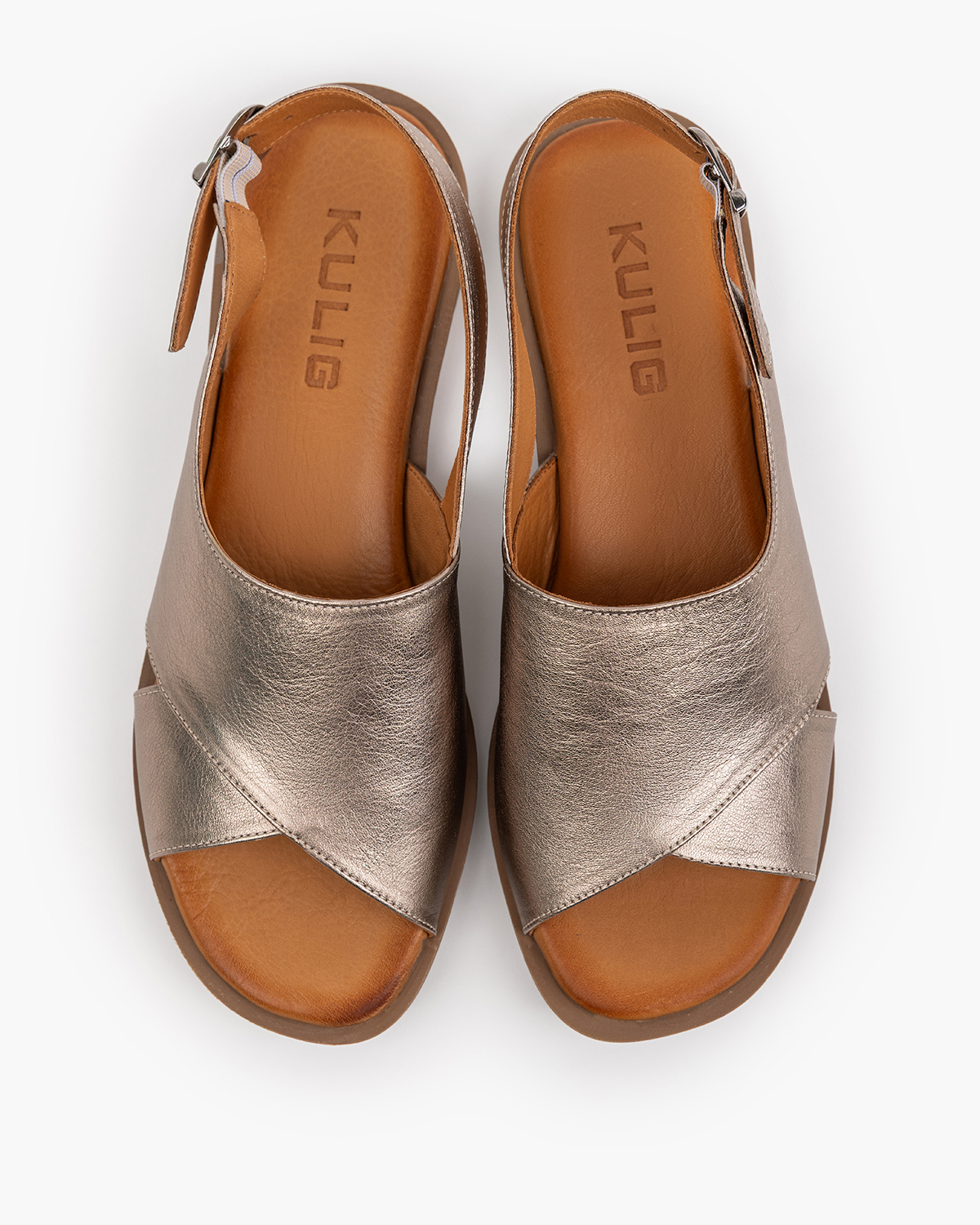 Złote sandały damskie ze skóry licowej na płaskim obcasie