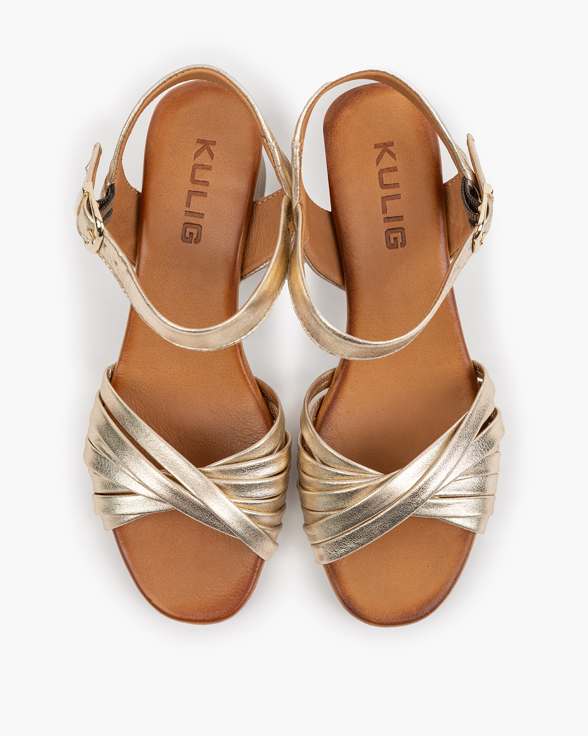 Złote sandały damskie ze skóry licowej z wycięciami