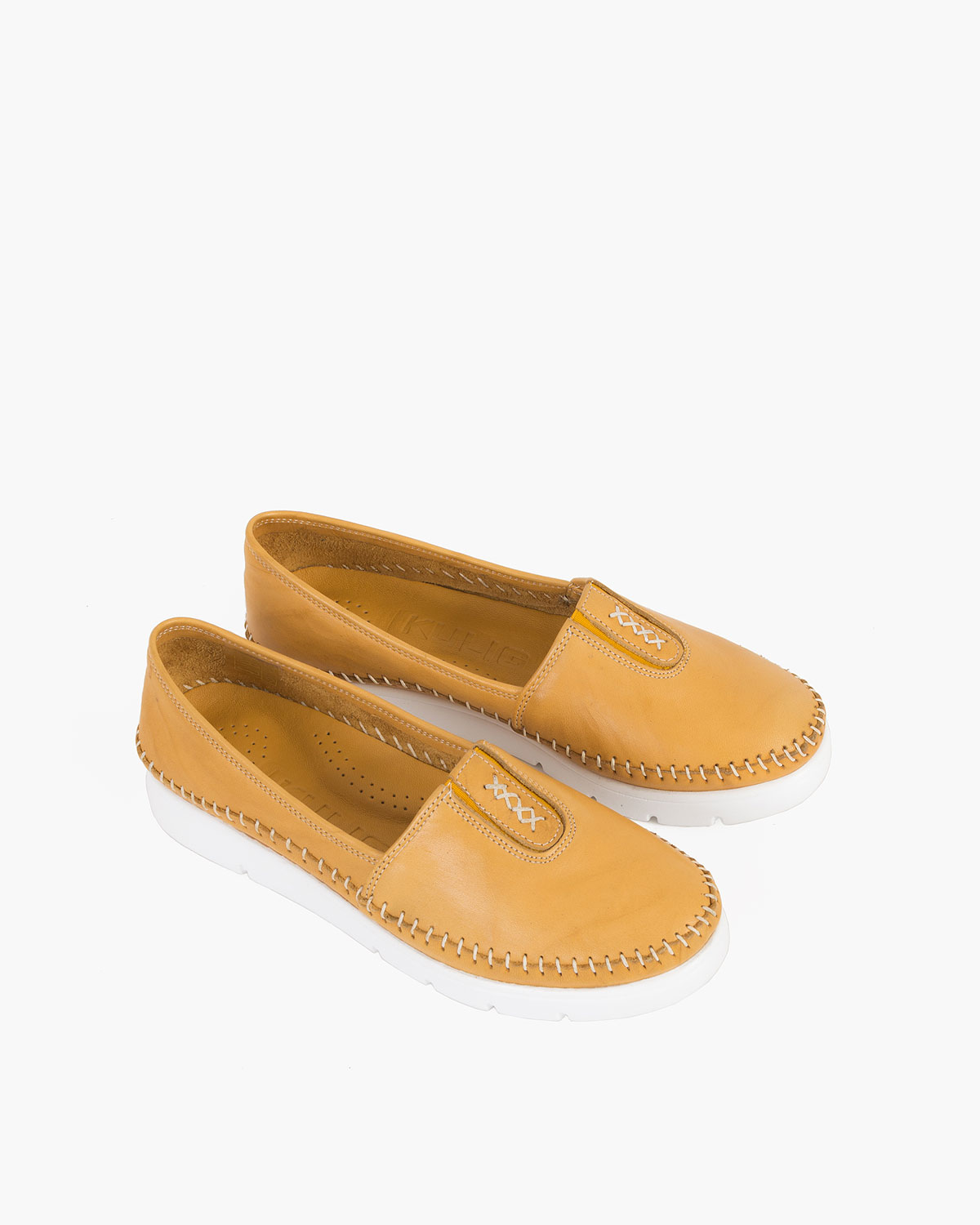 Żółte mokasyny damskie skórzane